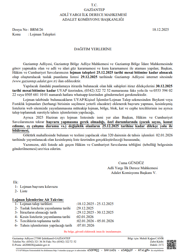 2026 Yılı Lojman Taleplerine İlişkin Duyuru