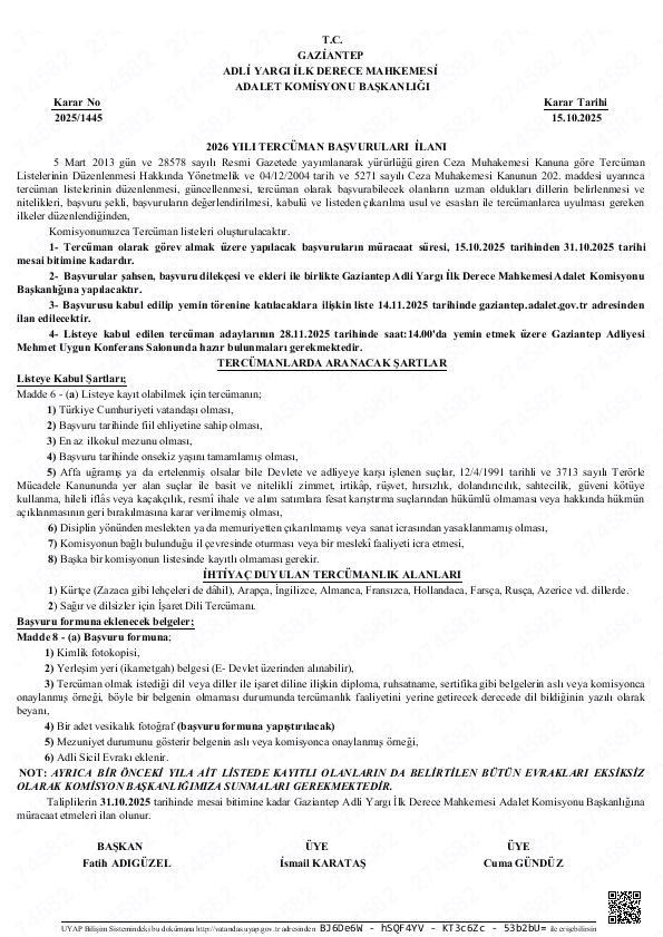 Tercüman İlan Kararı