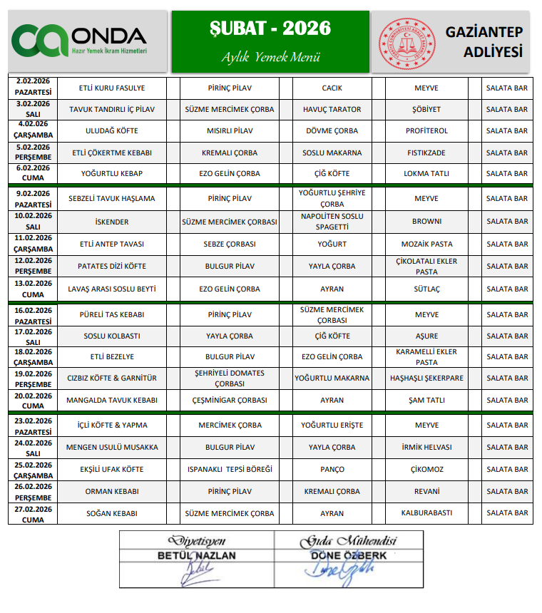 Yemek Menüsü